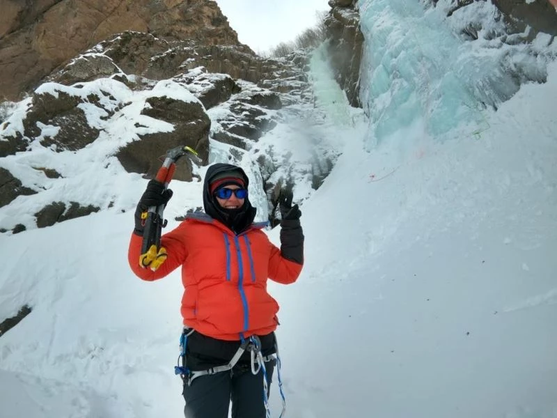 Bafra’nın belgeli tek kadın dağcısı donmuş şelaleye tırmandı