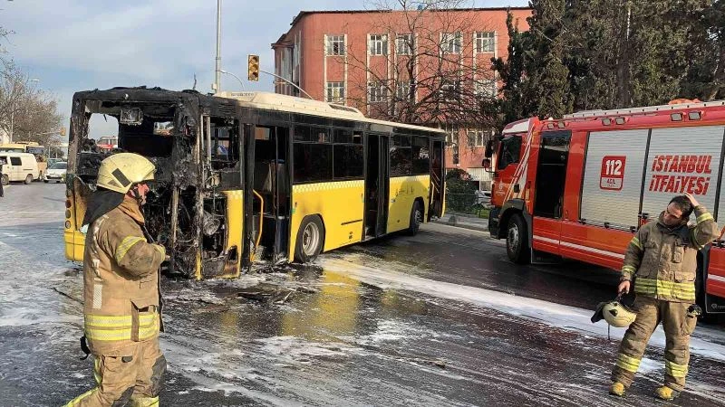 Bağcılar’da seyir halindeki İETT otobüsü motor kısmından tutuşarak alev alev yandı. İtfaiye ekiplerinin müdahalesiyle yangın söndürüldü.