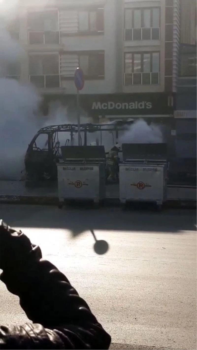 Bağcılar’da park halindeki yolcu minibüsü alev topuna döndü