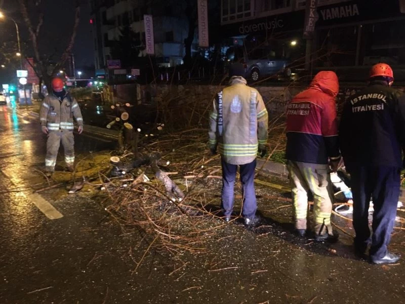 Kadıköy Bağdat Caddesi’nde sabahın erken saatlerinde aşırı yağmur ve rüzgar nedeniyle bir ağaç yolun ortasına devrildi. Şans eseri herhangi bir otomobilin üzerine düşmeyen ağaç, itfaiye ekipleri tarafından kesilerek yoldan kaldırıldı.