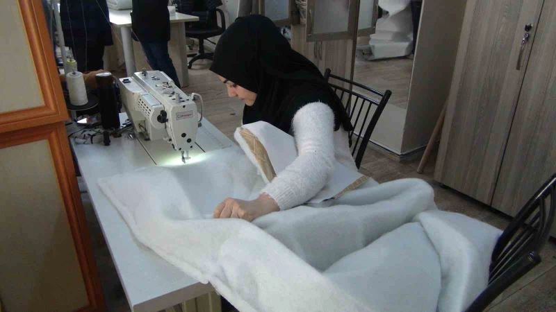 Kuruma yapılan kumaşları en iyi şekilde değerlendirmeye çalıştıklarını kaydeden kurs öğretmenlerinden Bedriye Vurgun, "Kurslarımıza ara verdiğimiz halde battaniye ve elyaf yorgan dikimi yapıyoruz. İnşallah yaptığımız yardımlar en kısa zamanda kendilerine ulaşır" şeklinde konuştu.