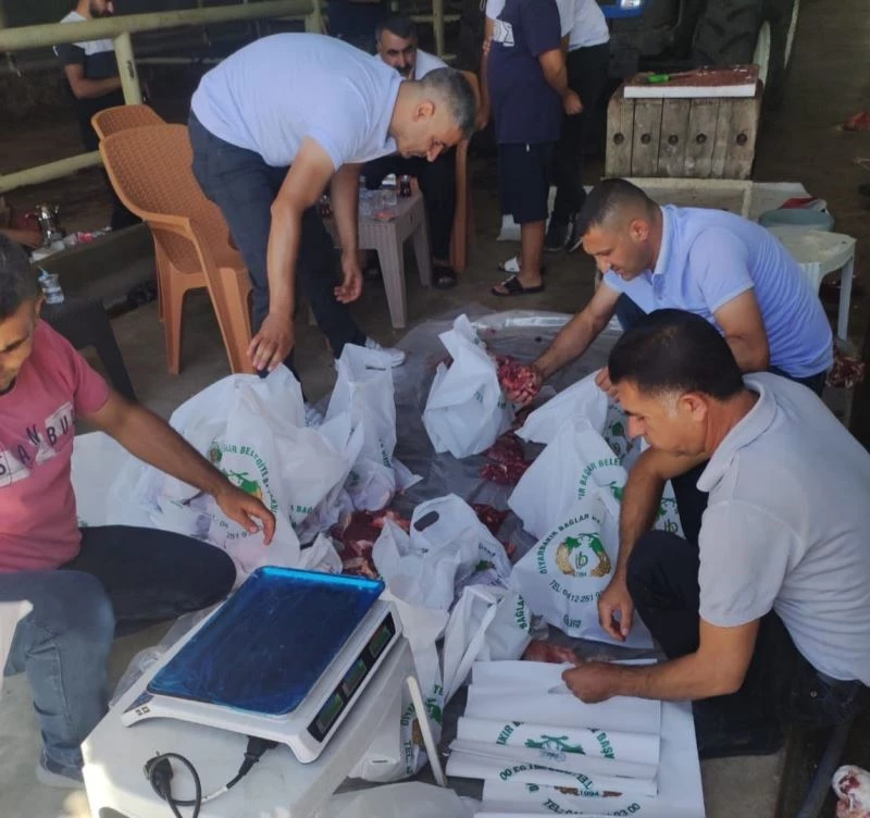 Bağlar Belediye Başkanı Hüseyin Beyoğlu’nun girişimleriyle temin edilen büyükbaş hayvanlar, uzman ekipler tarafından hijyen koşullarda kesildi, taksim edilen etler paketler haline getirilerek dar gelirli ve ihtiyaç sahibi vatandaşlara ulaştırıldı. Kurban kesmenin önemli bir dini vecibe olduğunu dile getiren Bağlar Belediye Başkanı Hüseyin Beyoğlu, bu durumu iyi değerlendirerek İhtiyaç sahibi vatandaşların sofralarına et girmesini sağlamak üzere böyle bir organizasyon düzenlediklerini söyledi.