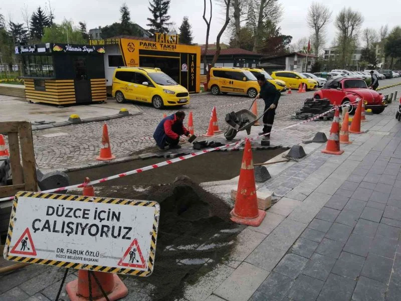 DÜZCE – Düzce’de havaların ısınmasıyla birlikte sahadaki çalışmalarını hızlandıran belediye ekipleri, kaldırımlarda tamir ve bakım yapıyor.