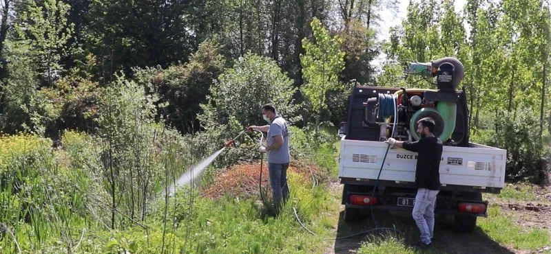 Düzce Belediyesi kent genelinde bin 100 ahır, 2 bin 27 foseptik kuyusunda ve her daim su bulunan 260 havza ile dönemsel sulak alanların ilaçlanmasına başladı.