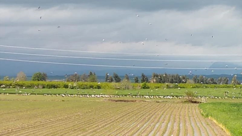 Havaların ısınmasıyla göç eden çok sayıda leylek, mola verdikleri Kozan'da güzel görüntü oluşturdu.