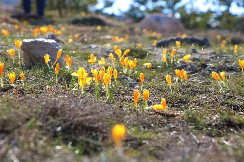 Sivas’ın Nevruz köyü yakınlarında bulunan Nevruz yaylasında baharın müjdecisi olan çiğdem çiçekleri kendini gösterdi.