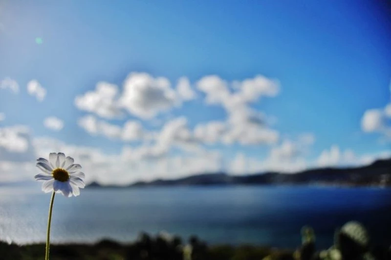 Bahar ayının müjdecisi olan ilk cemre havaya düştü. Tablo gibi görüntüler oluşan Bodrum’da ise kırlarda papatyalar açtı, çocuklar çiçek topladı.