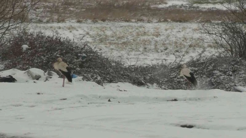 Baharın yaklaşmasıyla birlikte Avrupa yolculuğu başlayan leylek İstanbul’da mola vermişti. Göç yolculuğu sırasında Arnavutköy’deki boş alanlara konan leylekler kar yağışına yakalandı. Dondurucu soğukta zor anlar yaşadıkları gözlenen leylekler havadan görüntülendi.