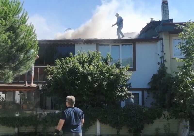Olay, Derince ilçesi Yenikent Mahallesi Gülbahar Sokak’ta meydana geldi. Edinilen bilgilere göre, sokak üzerinde bulunan 2 katlı binanın çatı kısmında içeride kimsenin bulunmadığı sırada yangın çıktı. Kısa sürede binanın çatısını saran dumanları gören çevredeki vatandaşlar, durumu 112 Acil Yardım ekiplerine bildirdi. İhbar üzerine olay yerine itfaiye, sağlık ve polis ekipleri sevk edildi. Yangını gören bir vatandaş ise bahçe hortumu ile çatıya çıkarak yangına müdahale etmeye çalıştı. Vatandaş müdahale etmeye çalışırken elleri hafif şekilde yandı. Olay yerine intikal eden itfaiye ekipleri, vatandaşı çatıdan indirerek sağlık ekiplerine teslim etti. Olay yerinde ayakta tedavisi yapılan vatandaş, daha sonra evine gönderildi. Alevler itfaiye ekipleri tarafından kısa sürede kontrol altına alınarak söndürüldü. Evlerinin yandığını gören ev sahibi ise fenalaştı. Baygınlık geçiren vatandaş sağlık ekipleri tarafından hastaneye kaldırıldı.