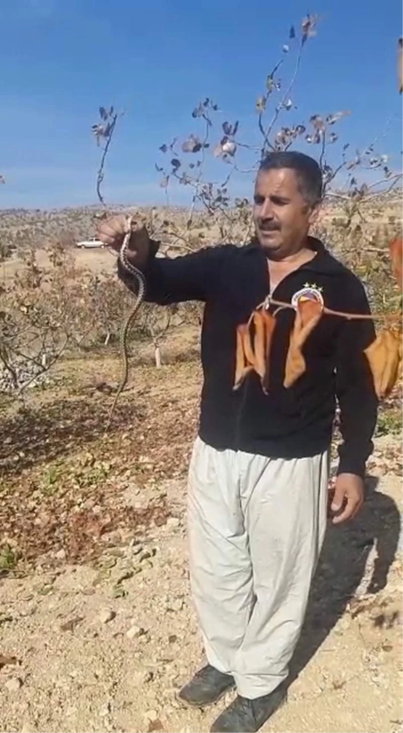 Siirt kent merkezine bağlı Bayraktepe köyünde muhtar, bahçesinde gördüğü yılanı eliyle yakaladı. Bir süre yılanla ilgilenip görüntü çeken muhtar, daha sonra hayvanı doğaya bıraktı.