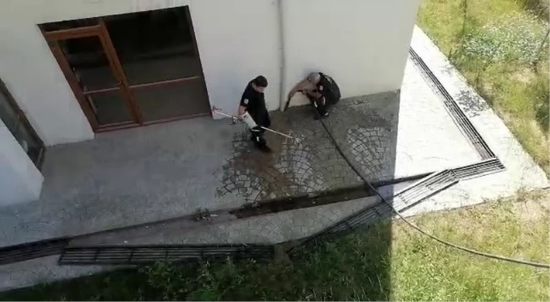 Bahçedeki mazgala giren yılanı itfaiye ekipleri yakaladı