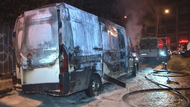 Bahçelievler’de park halinde bulunan ticari minibüs alevler içinde kaldı. İtfaiye ekiplerinin söndürdüğü araç kullanılamaz hale geldi.