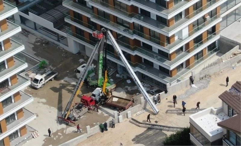 Bursa’da yapımı devam bir inşaatın şantiyesinde bulunan metrelerce uzunluğundaki vinç devrildi. O ânlar bir iş yerinin güvenlik kamerasına yansıdı.