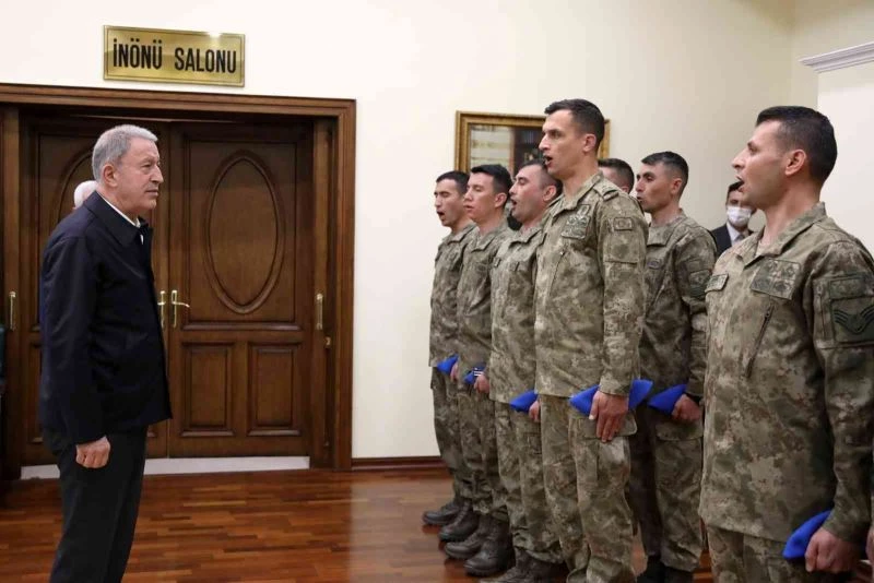Milli Savunma Bakanı Hulusi Akar, komandoları makamında kabul etti.