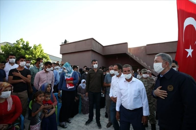 Milli Savunma Bakanı Hulusi Akar ve komutanlar, Şırnak’taki yoğun mesaileri sırasında Silopi’de terör örgütü PKK’nın hain saldırısında şehit olan 4 işçinin ailelerine de başsağlığı ziyaretinde bulundu.