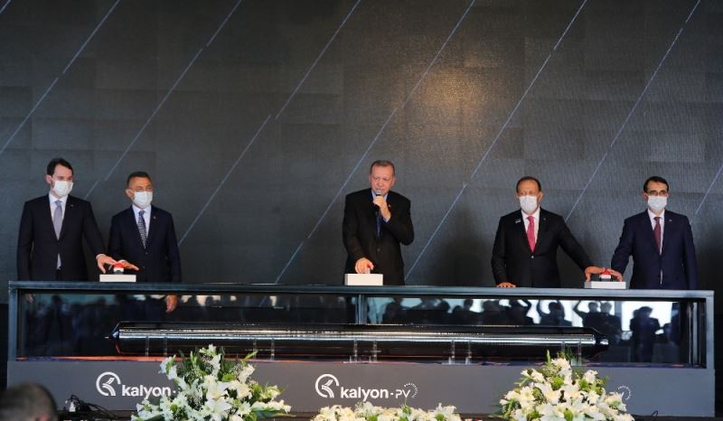 Cumhurbaşkanı Erdoğan’ın da katıldığı Sincan Başkent OSB’deki Kalyon Güneş Teknolojileri Fabrikasının açılış töreni sonrasında kameraların karşısına geçen Bakan Berat Albayrak, gurur verici bir tesisin açılışının yapıldığını belirtti. Bakan Albayrak, “Bugün tarihi bir gün, tarihi bir açılış yaptık. Bundan 4 sene önce bir stratejiden bahsetmiştik, milli enerji ve maden strateji belgesi kapsamındaki hedeflerimizden bahsetmiştik, bunun en tarihi adımlarından birisini atmış bulunuyoruz. Gurur verici bir iş. Türkiye açısından şu açıdan çok önemli, uzun yıllardır hep Türkiye’de montaj sanayi, üretim adı altında başka yerlerden gelip, birleştirip ‘ihracat yapıyoruz’ diyenlere inat, Türkiye güneş teknolojilerinden dünyada hatırı sayılabilir ülkelerden biri olacak bir tesisin açılışını yaptık. Bu tesiste üretilecek yerli panellerle dünyanın en büyük güneş tarlasını Konya Karapınar’da, onun da açılışını yaptık. Sadece ekonomik anlamda, enerji politikaları anlamında değil ama bir psikolojik eşiğin aşılması anlamında tarihi bir iş. Milyar dolarlık pazar. Sadece Türkiye iç pazarını değil, aynı zamanda ihracat kapasitesini de genişlettiğiniz bir iş. Türkiye’nin katma değerli üretimle birlikte istihdama, dönüşüm modeline de çok önemli bir örnek olacak bir yatırım. Kendi insan kaynağınıza güvendiğinizde Türkiye artık bu teknolojilerde de söz sahibi ülkelerden birisi olacak. Bunun bir sonraki adımı enerji depolama. Biz bunu başardıysak, enerji depolama tesisinin de yakın gelecekte gerçekleştiğini göreceğiz” diye konuştu.