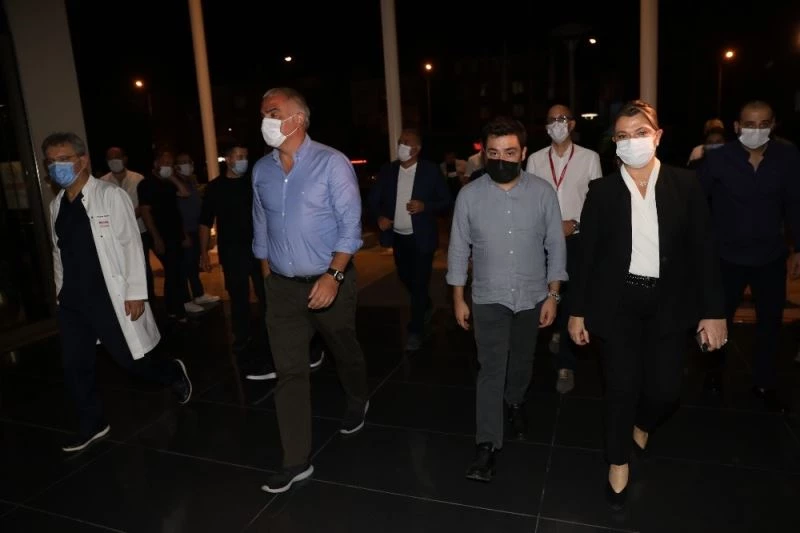Muhittin Böcek’in son yapılan korona virüs testleri negatif çıkarken, sağlık durumu da her geçen gün daha iyiye gidiyor. Kültür ve Turizm Bakanı Mehmet Nuri Ersoy da 14 Eylül Pazartesi akşam 21.00 sıralarında Başkan Böcek’in tedavi gördüğü hastaneyi ziyaret etti. Antalya Büyükşehir Belediyesi Genel Sekreteri Cansel Tuncer ve Başkan Böcek’in oğlu Gökhan Böcek tarafından karşılanan Bakan Ersoy, hastane yetkililerinden Başkan Böcek’in sağlık durumu hakkında bilgi aldı. Ersoy hastane çıkışı yaptığı açıklamada, “Başkanın sağlık durumu bir önceki haftaya göre daha iyi. Başkanımızın hızlı bir şekilde toparlayacağını umuyoruz. Şu anda çok riskli bir durum yok. İnşallah hızla toparlayacak” dedi.