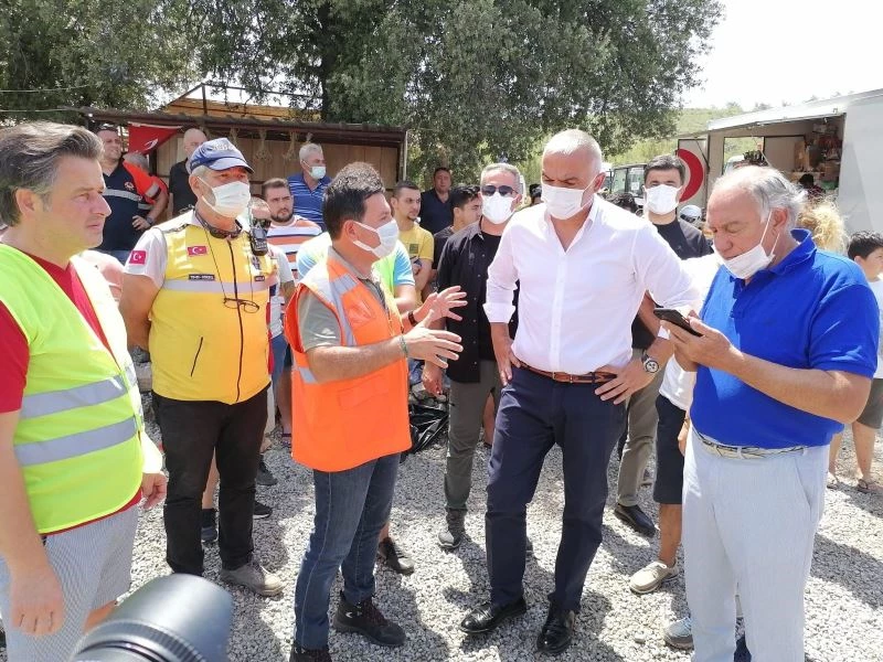 Bodrum Mazı Mahallesi’nde etkili olan yangın bazı evlere zarar verirken, kimi vatandaşlar ise bot ve teknelerle güvenli bölgelere çıkarıldı. Bölgede ekiplerin yangın söndürme çalışmaları ise devam ediyor. Kültür ve Turizm Bakanı Mehmet Nuri Ersoy yangın bölgesine gelerek yapılan söndürme çalışmaları hakkında bilgi aldı. Bodrum Belediye Başkanı Ahmet Aras’ın da bulunduğu ziyarette, Bakan Ersoy vatandaşlarla görüşerek, yangın nedeniyle oluşabilecek zararların en kısa sürede karşılanacağını ifade etti.