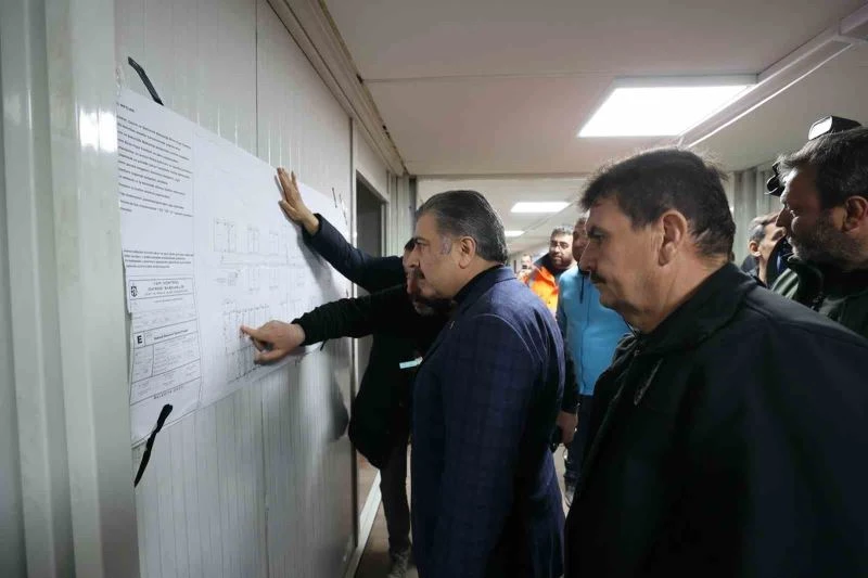 Sağlık Bakanı Dr. Fahrettin Koca, Hatay’ın Defne ilçesinde yapımı devam eden Kocaeli Büyükşehir Belediyesi’nin hastanesinde incelemelerde bulundu. İncelemede Bakan Koca’ya Burdur Valisi Ali Arslantaş ile Kocaeli Büyükşehir Belediyesi Genel Sekreter Yardımcısı Dr. Hasan Aydınlık da eşlik etti. Genel Sekreter Yardımcısı Aydınlık, Bakan Koca’ya hastane alanının 96 konteynerden oluşacağı, sağlık çalışanlarının barınması için ayrıca konteynerlerin kurulacağı ve 54 yataklı hastanede poliklinik hizmetlerinin yanı sıra ameliyathane ve yoğun bakım ünitesinin de olacağı bilgisini verdi.