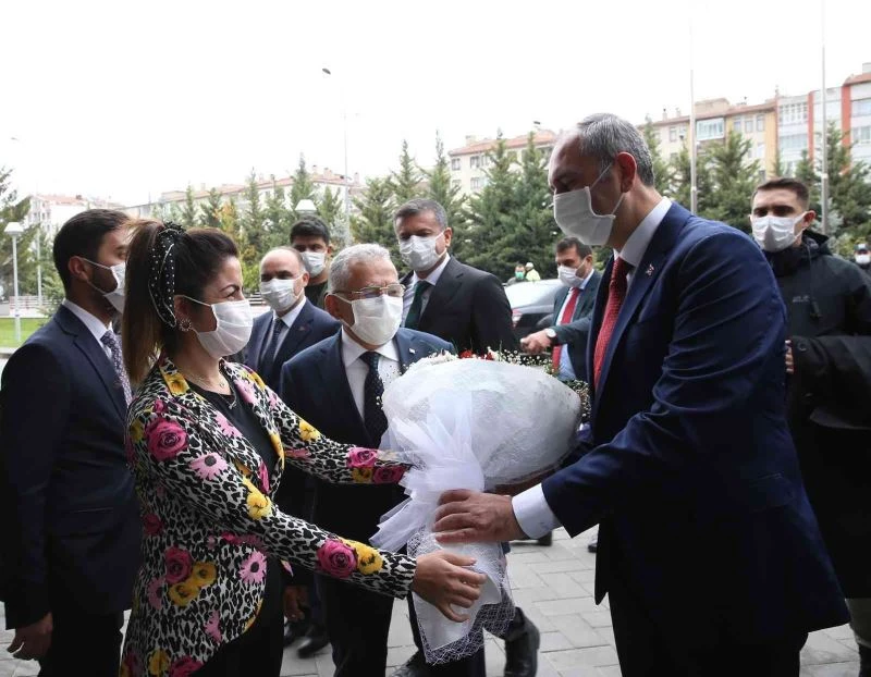 Bir dizi ziyaret ve programlar için kente gelen Adalet Bakanı Abdulhamit Gül, Kayseri Büyükşehir Belediyesi’ni ziyaret etti. Başkan Büyükkılıç, Bakan Gül’ü kapıda çiçeklerle karşılarken Bakan Gül, Büyükşehir Belediyesi Başkanlık Giriş Salonu’nda ziyarete açılan kadın kursiyerlerin hazırladığı el emeği, göz nuru eserlerin yer aldığı sergiyi gezdi. Başkan Büyükkılıç, Bakan Gül’e 150. Yılda 150 proje kapsamında seçim vaatlerinden birisi olan E-38 sanal pazarda yer alan 25 el sanatı branşı ile hazırlanmış 185 adet eserin bulunduğu sergi hakkında bilgiler verdi. Bakan Gül, eserleri ilgiyle inceleyerek, “Muhteşem. El emeği, göz nuru” yorumunu yaptı. Sergi gezisinin ardından Büyükşehir Belediye Başkanı Dr. Memduh Büyükkılıç, Adalet Bakanı Abdulhamit Gül ve beraberindeki heyet ile birlikte başkanlık makamına geçti. Burada gerçekleşen ziyarette Başkan Büyükkılıç, Bakan Gül’e kentte yapılan ve yapılacak olan hizmetler ve projeler ile ilgili detaylı bilgi verdi. Bakan Gül’e ziyaretlerinden dolayı teşekkürlerini ileterek sözlerine başlayan Başkan Büyükkılıç, “Kayseri’mize her zaman sahip çıkan, gerçekten fiziki olarak Kayseri’mizde tüm adli yapıların yenilendiğini paylaşarak, gerek hükümetimize, gerek sizlere, gerekse Kayseri’mizdeki diğer bakanlara, huzurlarınızda cumhurbaşkanımızın olmazsa olmazı olan destekleriyle teşekkür ediyoruz” dedi. Büyükkılıç, kentin yaklaşık bir buçuk milyonluk nüfus potansiyeli olduğunu ifade ederek, “Dolayısıyla bu bir buçuk milyonluk nüfusumuzun bir de etki alanı var. 8 komşu il; şöyle baktığımızda, Niğde’miz, Kırşehir’imiz, Nevşehir’imiz, Yozgat’ımız, Sivas’ımız, Malatya’mız, Kahramanmaraş’ımız, Adana’mız. Kayseri’mizin etrafını çevreleyen Kapadokya ile birlikte birbirinden ayrılmaz anlayış içerisinde hatta Aksaray’ımızı bile dâhil edecek durumdayız. Böyle bir potansiyelimiz var” diye konuştu.