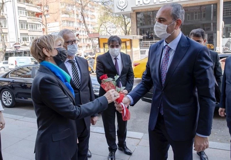 Ankara 54. Noteri Handan Baykam da, Bakan Gül’e ziyaretleri için teşekkür ederek, “Sayın Bakanımıza göstermiş olduğu hassasiyet için ve noterliklerle ilgili yürüttüğünüz çalışmalar için teşekkür ediyoruz. Biz normalde 5 Mayıs’ları farklı etkinliklerle kutlarız. Ancak 2 yıldır pandemi dolayısıyla daha sakin kutluyoruz, bir araya gelemiyoruz ama bugünkü gerçekleştirdiğiniz sürpriz ziyaretle ayrı bir önem kazandı” diye konuştu.