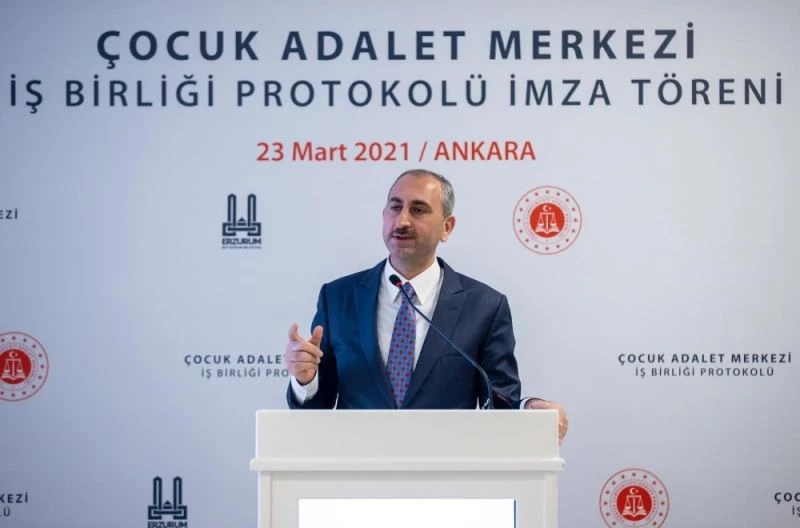 Başta mağdur olmuş kadınlar ve çocukların adliyede kendilerini yalnız hissetmeyeceklerini ifade eden Gül, “Adliyeden giren kırılgan gruplarda mağdur olmuş kadın, çocuk kendisini yalnız hissetmeyecek. Adalet Bakanlığı bünyesinde adliyelerde kurduğumuz adli destek müdürlüklerimiz onların yanında olacak. Artık adliyelerde kendilerini yalnız hissetmeyecek. Suça mağdur olmuş kadınlar, çocuklar başta olmak üzere. Bu uygulamayla Çocuk Mahkemesi, Cumhuriyet Başsavcılığı Çocuk Soruşturma Bürosu ve savcıları, Destek ve Mağdur Hizmetleri Müdürlüğü, adli görüşme odaları, çocuk polisi, çocuk avukatlarını bir araya getiriyor, adliye dışında Çocuk Adalet Merkezi çatısı altında topluyoruz. Böylece çocukları adliyeye sokmadan ve mümkün olduğu kadar adli sürece dahil etmeden tüm adli işlemlerinin bu merkezde yerine getirilmesini amaçlıyoruz. Yine, İnsan Hakları Eylem Planı’nın öngördüğü şekilde çocuk mahkemesi duruşma salonunu çocuk dostu tasarlıyor, hakim ve avukatların duruşmalarda cüppe giymemesi gibi yeniliklere yer veriyoruz. Kurulacak Çocuk Adalet Merkezi ile çocuklara yönelik tüm adli işlemler yetişkinlerden ayrı olarak çocuk dostu ortamda yine çocuk dostu usuller uygulanarak gerçekleştirilecek. Adli süreç boyunca çocuklara adli destek görevlilerinden etkin şekilde yararlanabilme imkânı sağlanacak. Çocuklar adli sürecin yıpratıcı etkisinden korunmuş olacak. Ayrıca diğer ilgili kurum ve kuruluşların temsilcileri de bu merkezde yer alacağından çocuk koruma sisteminin daha etkin ve bütüncül işlemesi sağlanarak çocuğun üstün yararı korunmuş olacak. Bir ülke için en büyük sermaye beşeri sermayedir. Çocuklarımız bizim geleceğimizdir. Toplum bireylerden oluşmaktadır. Bireylerin maddi manevi sağlıklı gelişiminin ilk ocağı aile ocağıdır. Çocuğun gelişiminin ilk temeli ailede atılmaktadır. Çocuğun üstün yararını gözetecek olan da ailedir. Bunun için biz aileyi toplumun temel taşı sayıyoruz. İster kadın ister erkek, her bireyin yetiştiği ortam aile ortamıdır. Çocuk sevgi ve merhametin kalesi olan ailede yetişir. Biz aileyi toplumun nüvesi, kilit taşı, mayası olarak gören bir medeniyetin mensuplarıyız. Bizim kültürümüzde ve inancımızda devletin beş temel vazifesinden birisi de neslin korunmasıdır. Güçlü bir ülke, güçlü bir millet, huzurlu bir toplum olabilmenin öncelikli şartı güçlü bir aile yapısına sahip olmaktır. Kişilik okuldan ve toplumdan önce ailede inşa edilir, ailede oluşturulur. Karakter, dışarıdan önce aile içinde şekillenir, biçim kazanır” ifadelerini kullandı.