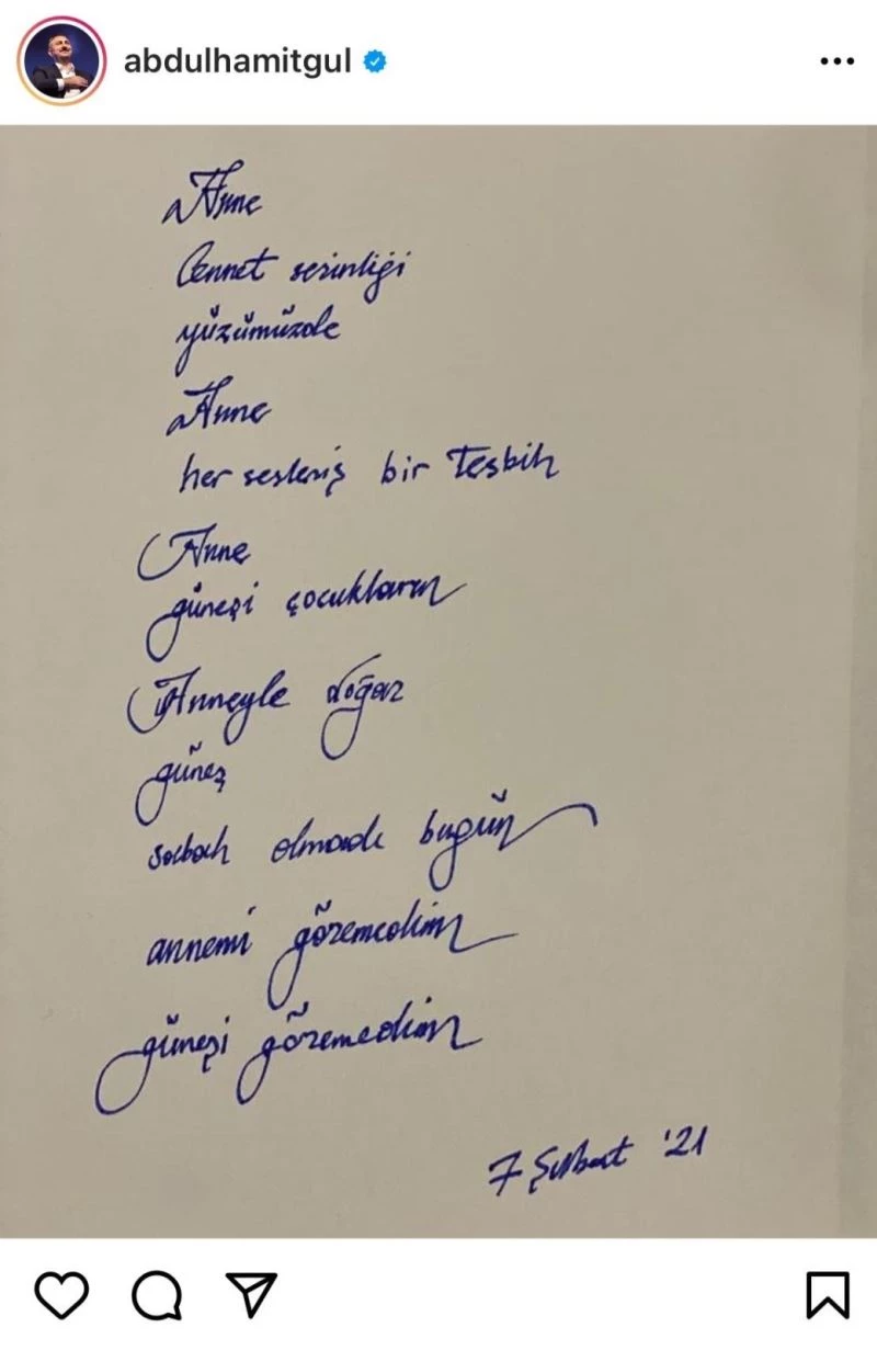 9 Nisan tarihinde annesi Saliha Gül hanımefendiyi kaybeden Gül, annesinin tedavi gördüğü sırada kaleme aldığı şiiri sosyal medya hesabından paylaştı.