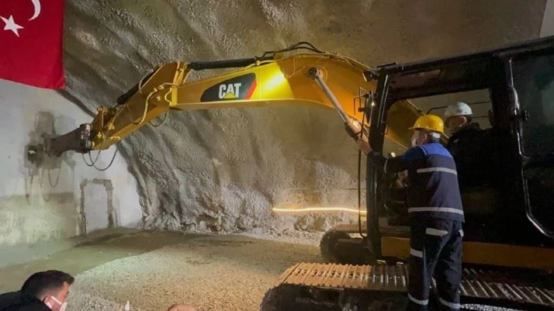 Konuşmaların ardından Bakan Adil Karaismailoğlu, iş makinesinin üzerine çıkarak dağın iki yamacını yaptığı delme işlemi ile birleştirdi.
