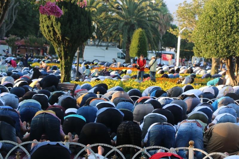 Ayasofya-i Kebir Cami-i Şerifi’nin 86 yıl sonra ibadete açılmasının ardından kılınan ilk bayram namazına vatandaşlar yoğun ilgi gösterdi. İlk bayram namazını Diyanet İşleri Başkanı Prof. Dr. Ali Erbaş kıldırdı. Bayram namazı öncesi cami içerisindeki yerlerini alan vatandaşlar, sosyal mesafe kuralına dikkat etti. Ezanın okunmasının ardından vatandaşlar namazlarını kılmak için saf tuttu. Ulaştırma ve Altyapı Bakanı Adil Karaismailoğlu, İstanbul Valisi Ali Yerlikaya, Fatih Belediye Başkanı M. Ergün Turan da bayram namazını Ayasofya’da kıldı. Kılınan bayram namazının ardından Fatih Belediyesi tarafından vatandaşlara çorba ikramı yapıldı. Bakan Karaismailoğlu, Vali Yerlikaya ve Fatih Belediye Başkanı Turan, namaz sonrası vatandaşlara çorba ikram etti. Fatih Belediyesi tarafından ayrıca Ayasofya hatırası bez çanta ve seccadesi olmayanlara tek kullanımlık seccade verildi. Aynı zamanda 10 bin adet Ayasofya-i Kebir Cami-i Şerifi anısına madalyon dağıtıldı.