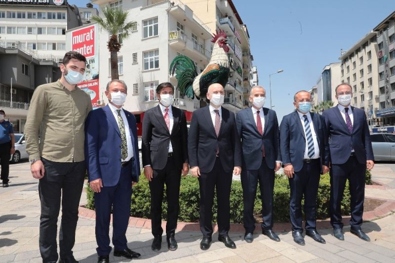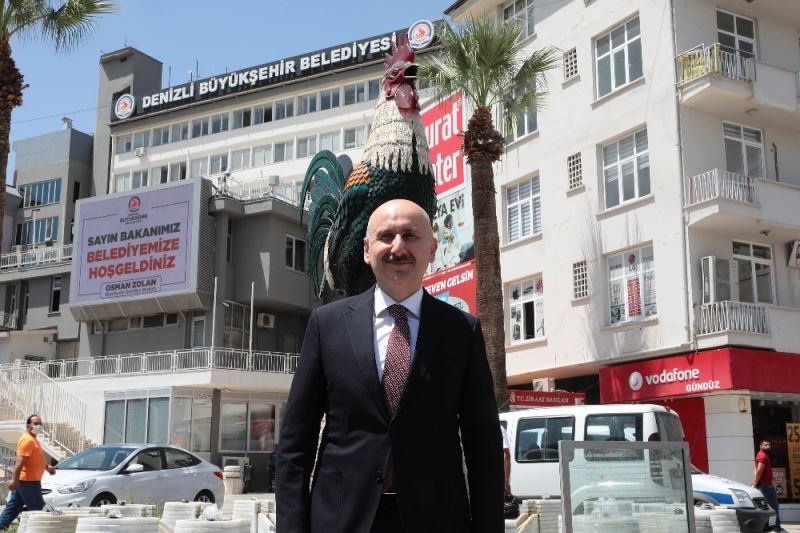 Ulaştırma ve Altyapı Bakanı Karaismailoğlu, Denizli Büyükşehir Belediye Başkanı Osman Zolan’ı ziyaret etti. Dev cam horoz heykeli ile fotoğraf çektirmeyi ihmal etmeyen Bakan Karaismailoğlu, "Aydın-Denizli Otoyolu, Aydın ve Denizli’yi ilgilendirdiği kadar aslında ülkemizi de ilgilendiriyor. Çok önemli bir proje, 163 kilometrelik çok önemli bir aks. Hedefimiz 2 yıl içerisinde bu yolu tamamlamak ve vatandaşımızın hizmetine alarak ülkemizin ekonomisine katkı sağlayacağız inşallah. Biz bir ekibiz. Her zaman olduğu gibi bütün işlerin üstesinden gelip, Cumhurbaşkanımızın liderliğinde ülkemizi dünyanın en gelişmiş ekonomileri arasına yerleştirmek için canla başla hep birlikte çalışacağız” dedi.