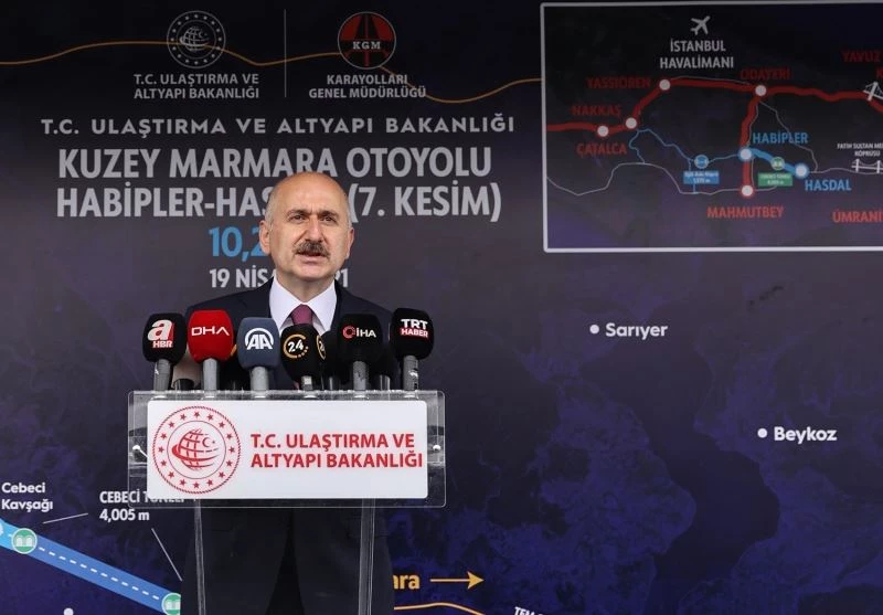 "Habipler ile Hasdal kesiminin trafiğe açılmasıyla birlikte, 400 kilometre uzunluğundaki Kuzey Marmara Otoyolu’nun tamamını hizmete almış olacağız"