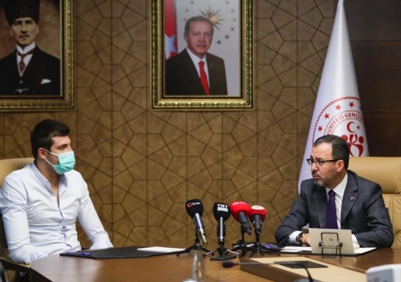 Bakan Kasapoğlu, milli yüzücü Emre Sakçı’yı kabul etti