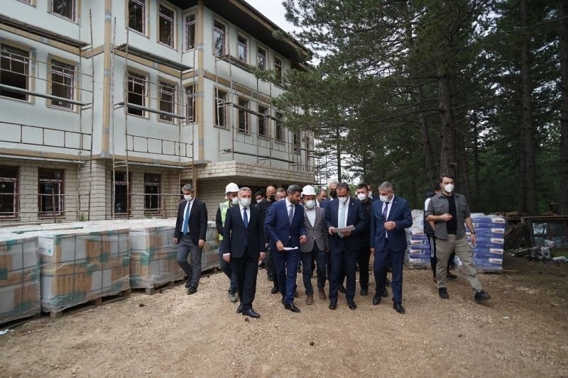 Uzun zamandır atıl vaziyette olan, son olarak Gençlik ve Spor Bakanlığı tarafından Olimpiyat Hazırlık Merkezi haline getirilecek olan Mahalli İdareler Eğitim Merkezi (MİEM) inşaat alanını da ziyaret eden Bakan Kasapoğlu, burada görevlilerden yürütülen çalışmalar hakkında bilgi aldı.
