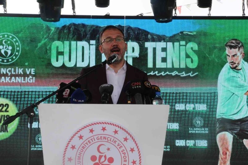 Bu topraklarda devlet millet el ele aydınlık yarınlar için verilen mücadelenin pek çok şahitliği olduğunu belirten Bakan Kasapoğlu, "Bu dağlar bunun şahididir. Ortaya koymak için canından geçenler oldu. Tüm şehitlerimizi rahmetle anıyorum. Yapılamaz denileni hamdolsun beraber gerçekleştirdik. Cumhurbaşkanımızın önderliğinde aşılamaz denilenleri aştık. Kurulan bütün kumpasları da hep birlikte yendik. Birilerinin makus kaderi böyledir diyerek, huzursuzlaştırmaya çalıştığı bölgeler bugün şükürler olsun ki istikrarın, refahın, kalkınmanın ve güçlü yarınların sembolü olmuştur. Devletimiz 85 milyonun elini tutacak, yüreğine dokunacak. Ülkemizde lisanslı sporcumuzun sayısı 11 milyonu geçti. 11 milyon 40 Avrupa ülkesinin nüfusundan fazladır. Biz bu potansiyelin farkındayız. Bu potansiyeli en etkin şekilde kullanmak bizim sorumluluğumuzdur. Bütün branşlarda olduğu gibi tenise de çıtamızı büyüttük. Cudi Dağında bu güzide mücadeleler devam ederken, odağımızda bu vardı. Bu manzara eşliğinde dünyanın en güzel tesislerinden birini inşa ettik. Dünyanın farklı ülkelerindeki insanları burada bir araya getirmenin hayalini kurduk. Spor kompleksimizde 2’si kapalı olmak üzere 6 tenis kortumuz var. 9 farklı ülkeden 81 sporcumuz mücadele edecek. Sporcularımız dostluk kardeşliğin örneklerini verirken, rekabeti de güçlü şekilde ortaya koyacaklar. Gündüzleri tenis turnuvasında mücadele verirken, geceleri de gençlik festivaline dönüşecek. Birçok değerli sanatçılarımız burada sahne alacaklar" açıklamasını yaptı.