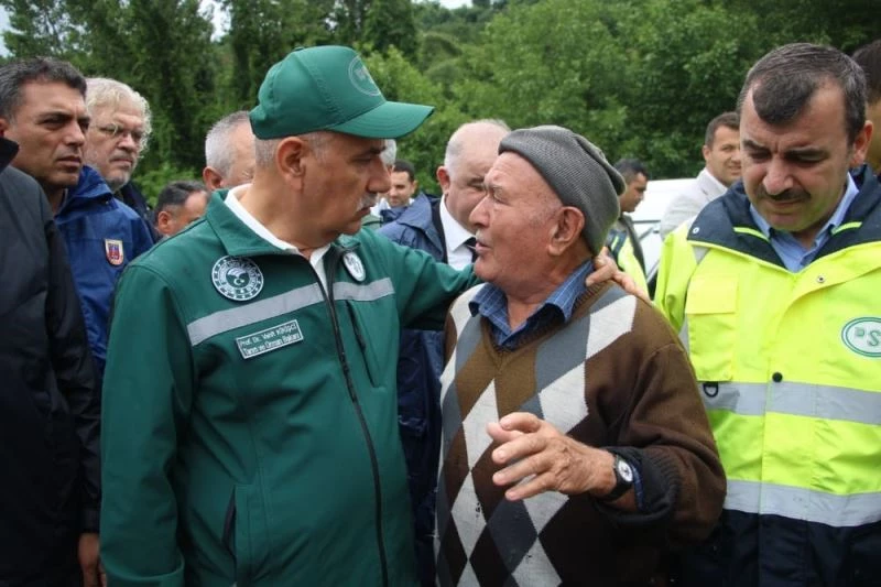 Tarım ve Orman Bakanı Prof. Dr. Vahit Kirişçi, Zonguldak’ın Çaycuma ilçesinde ekili arazileri sular altında kalan çiftçilerle görüştü.