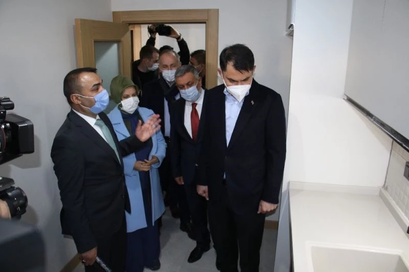 Bakan Kurum, tamamlanan deprem konutlarını inceledi