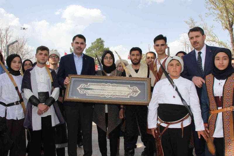 Çevre, Şehircilik ve İklim Değişikliği Bakanı Murat Kurum’a Sivas ziyareti sırasında zırh delen ok ve bir çift Kangal yavrusu hediye edildi.