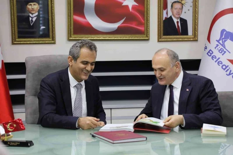 Düzce’ye bir dizi ziyaret ve şehrin eğitimini masaya yatırmak için gelen Milli Eğitim Bakanı Mahmut Özer’i, Düzce Belediye Başkanı Dr. Faruk Özlü belediyede ağırladı. Başkan Özlü’nün eğitim konusundaki hassas yaklaşımından övgü ile bahseden Bakan Özer, “Eğitimde en büyük paydaşımız Başkanımız Faruk Özlü oldu” dedi.