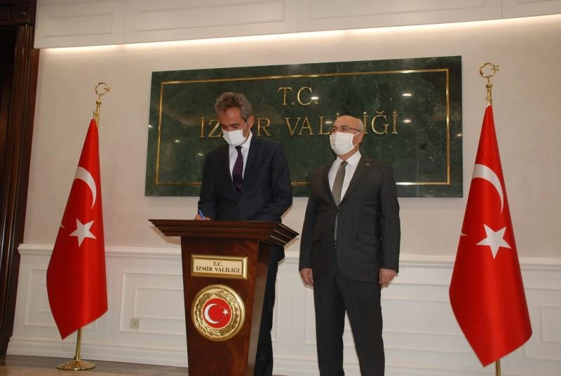 Milli Eğitim Bakanı Mahmut Özer, bakanlık görevine gelmesinin ardından ilk resmi ziyaretini İzmir Valiliğine yaptı. İzmir Valisi Yavuz Selim Köşger tarafından karşılanan Bakan Özer, tüm okulların 6 Eylül’de yüz yüze açılacağını ifade ederek, “Şu an itibariyle tüm okullarımızın maskeden dezenfektana ve temizlik malzemelerine kadar tüm ihtiyaçları giderilmiştir. Tüm okullarımıza gerekli destekler sağlanmıştır. Bakanlığımızdaki tüm arkadaşlarımız sahada. İllerimizde, ilçelerimizde hazırlık çalışmalarını kontrol ediyorlar. Bu çerçevede ben de bugün ilk resmi ziyaretimi İzmir’e yapmış bulunuyorum. İzmir’deki hazırlıkları, çalışmaları Sayın Valimiz, İl Milli Eğitim Müdürümüz ve tüm ilçe milli eğitim müdürlerimizle birlikte masaya yatıracağız. Sadece 6 Eylül’de okulların açılmasıyla ilgili hazırlıklar değil, her zaman İzmir’de eğitimin kalitesinin artması, İzmir’deki yatırımlar ve diğer konuları da inşallah ayrıntılı bir şekilde değerlendirme imkanı bulacağız. Sayın Valimize, İzmir’deki eğitimin kalitesinin artması ve desteklerinden dolayı şahsım ve Milli Eğitim Bakanlığı adına şükranlarımı sunuyorum. Süreçleri başarılı bir şekilde devam ettiren başta İzmir İl Milli Eğitim Müdürümüz olmak üzere tüm ilçe milli eğitim müdürlerimize teşekkür ediyorum” diye konuştu.