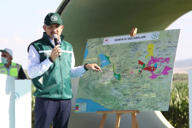 Tarım ve Orman Bakanı Bekir Pakdemirli, Türkiye’nin ikinci büyük entegre sulama projesi Konya Ovası Projesi (KOP) kapsamında yer alan Konya-Çumra Projesinin 3. Merhalesi KOS 1,2,3’ün açılış törenine katıldı. Törene Cumhurbaşkanı Recep Tayyip Erdoğan da İstanbul’dan canlı bağlantı ile katıldı. Bakan Bekir Pakdemirli, son 18 yılda yakaladıkları büyük ivmeyle 18 milyon dekar araziyi sulamaya açtıklarını söyledi.