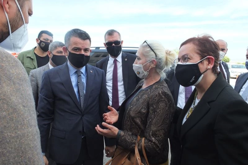 Bandırma Onyedi Eylül Üniversitesi’nin ardından davet üzerine Doğanpınar Mahallesi’ne geçen Bakan Pakdemirli, burada çiftçilerle sohbet ederek incelemelerde bulundu.