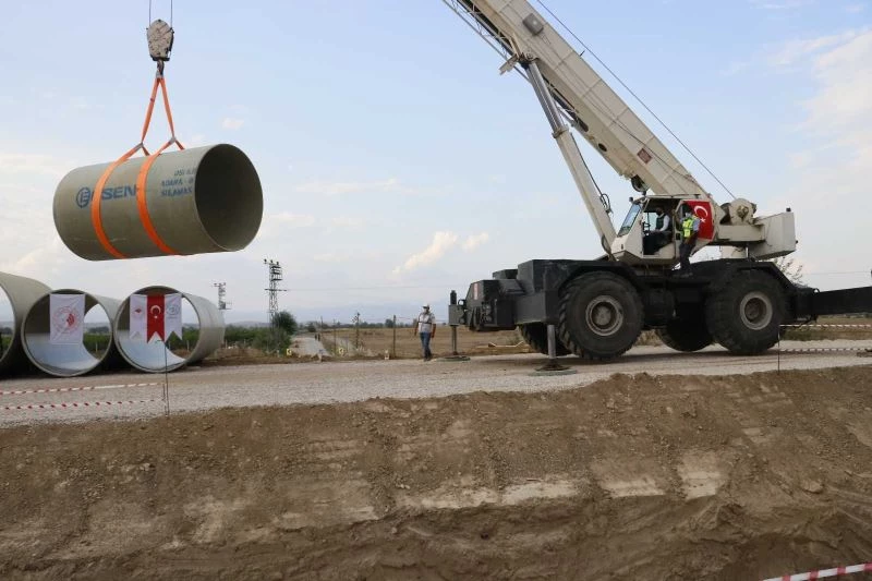Konuşmaların ardından Bakan Pakdemirli iş makinesine geçerek boru yerleştirdi.
