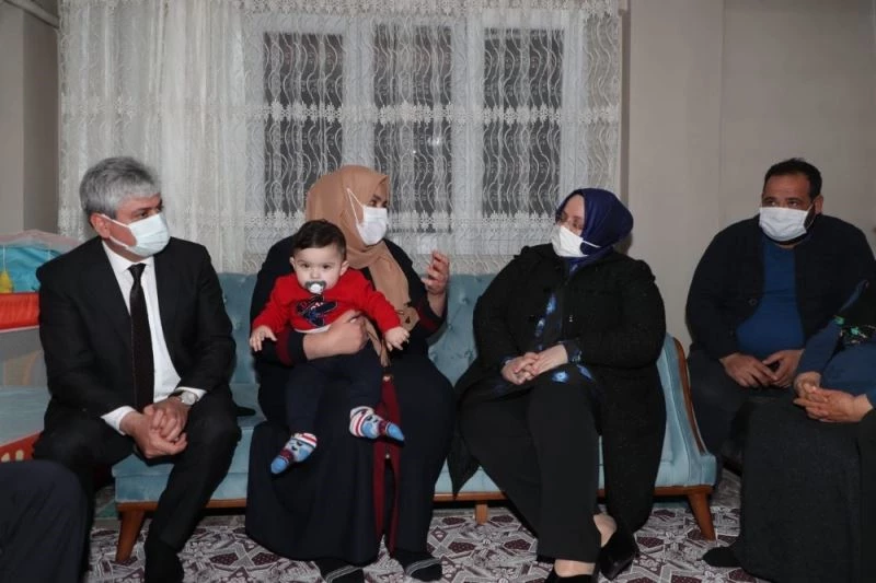 Aile, Çalışma ve Sosyal Hizmetler Bakanı Zehra Zümrüt Selçuk, Suudi Arabistan’dan getirilen beşiz bebek sahibi aileyi evinde ziyaret etti.