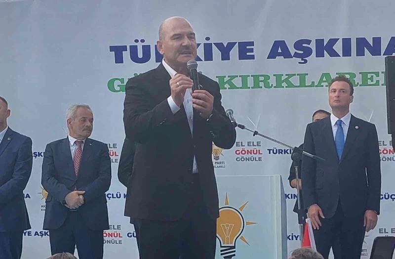 Kırklareli’nde çeşitli ziyaretlerde bulunduktan sonra düzenlenen mitingde halka hitap etti. Bakan Soylu yaptığı açıklamada, "9-10 ilde 120’nin altında terörist kaldı, 29 Ekim 2023’te tek bir terörist kalmayacak. Benim Amerika’da bir tek malım var o da FETÖ" dedi.