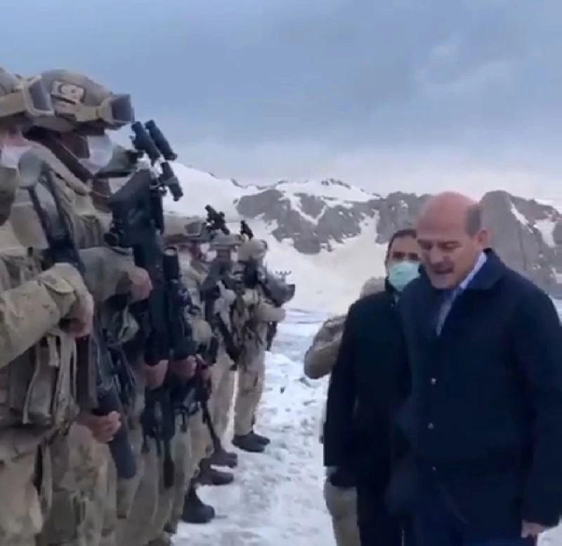 İçişleri Bakanı Sülayman Soylu, Hakkari’nin Yüksekova ilçesindeki İki Yaka Dağları’ndaki Mehmetçikle bir araya geldi.