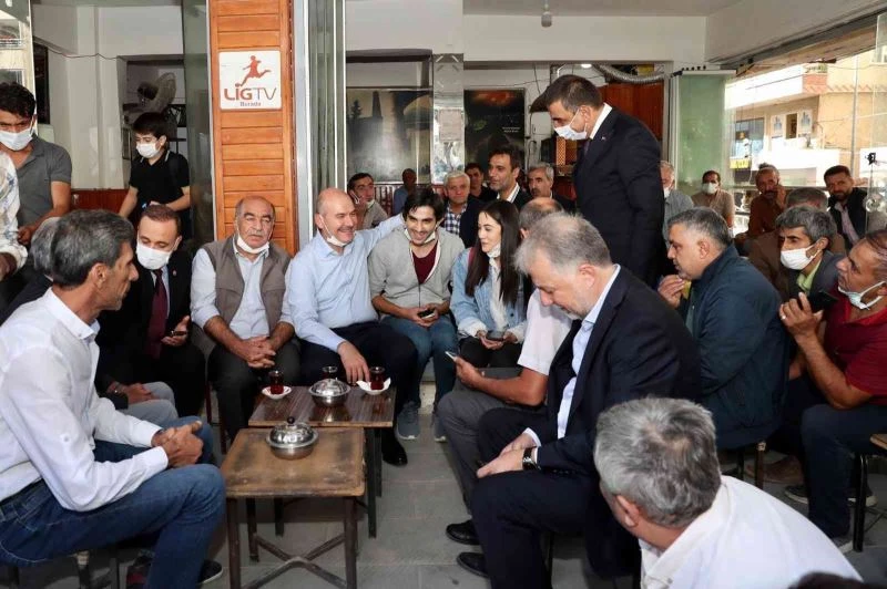 İçişleri Bakanı Süleyman Soylu, Siirt kent merkezinde esnafı ziyaret ederek vatandaşlarla sohbet etti.