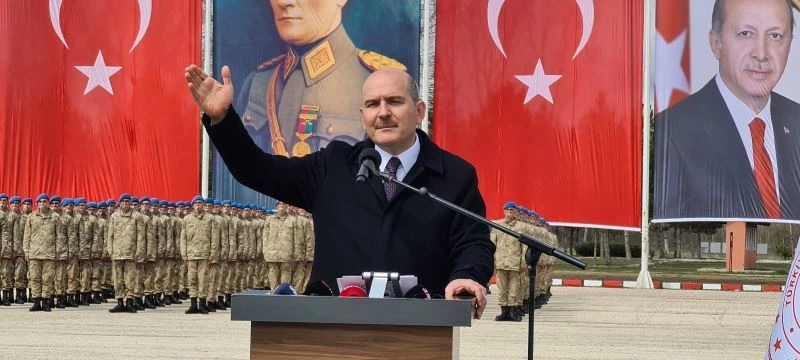 Üzerlerindeki yükün ağır olduğunu söyleyen Soylu, sözlerine şöyle devam etti; "Hasmımız çoktur. 24 saat uyanık olmanın bizler için normal bir hal olduğunu bildiğimiz coğrafyadayız. Eskiden PKK’ya uzaktan yardım gönderirlerdi, uzaktan para gönderirlerdi, uzaktan akıl verirlerdi. Şimdi PKK’nın canı boğazına gelince içeride bu kahraman evlatlarımız sayesinde nefes alamaz hale gelince dikkat edin, PKK’nın yatırımcıları ve destekçileri Kandil’in yanı başına geldiler. Can simidi atmaya çalışıyorlar. Mallarına sahip çıkmaya çalışıyorlar. Suriye’de, Kuzey Irak’ta PKK’ya yeni yerler bulmaya çalışıyorlar. Bu ülke için ezanı Muhammed’i için namusuz, al bayrağımız için şehit olmayı kendisine ve ailesine en büyük miras olarak gören Kastamonu’dan sesleniyorum, ne yaparlarsa yapsınlar, ne kadar tuzak kurarlarsa kursunlar hangi hain ile beraber olursa olsunlar, çalışıyorlar ama nafile artık bu terör örgütlerinin akıbeti belli olmuştur. İnsanlar 10 yıldır can havliyle Suriye’den kaçıyorlar. Bizim binlerce yıllık komşularımız, 100 yıl önce aynı devletin aynı milletin üzerinde yaşadığımız insanlar, bugün kendi ülkelerinden kaçmakta ve bu güzelim ülkeye sığınmaktadırlar. İnsanlar Irak’tan Afganistan’dan Pakistan’dan kaçıp bize sığınıyorlar. Bize Avrupa’nın zenginliğine gelişmişliğine değil, bizi Avrupa’nın huyuna, kimliğine, karakterine benzetmeye çalışanlar, anne ve babalarını huzurevlerine kapatan insanlara, aile değerleri yozlaşmış değerleriyle takas etmeye çalışanlar, bugün tüm güçleriyle tüm karanlık yapılarıyla, FETÖ’sünden, DEAŞ’ından, PKK’sından, uyuşturucu ticaretinden göçmen kaçakçılığına kadar tüm imkanlarıyla bizlere saldırıyorlar. Bunun için bu ülke alelade topraklar, bu üniformalarda alelade üniformalar değildir. Üzerinize aldığınız sorumluluğu iyi anlayın. Sizler bugün jandarma ve sahil güvenlik teşkilatlarına adım atıyorsunuz. Dünyanın en büyük teşkilatı, bu kadar büyük bir sorumluluk sahası. Bu kadar büyük teknik ve personel kapasitesi. Bu kadar büyük bir tecrübesi olan bir başka jandarma teşkilatı bulmanız iddia ediyorum mümkün değil."