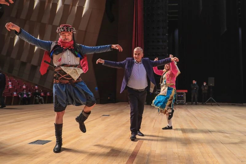 Kürşad Tüzmen, buradaki 2 bin kişilik Özay Gönlüm Salonu’nda efe kıyafeti giyerek Denizli Büyükşehir Belediyesi Halk Oyunları Topluluğu ile zeybek oynadı. Başkan Zolan’ın da eşlik ettiği küçük gösteri renkli görüntülere sahne oldu. Denizli’nin değerlerinin tanıtılmasının önemli olduğunu belirten Başkan Osman Zolan, önceki dönem Devlet Bakanı Tüzmen’i ağırlamaktan büyük mutluluk duyduklarını belirterek, tecrübeli siyasetçinin halk oyununu başarılı bir şekilde oynadığını söyledi. Tüzmen ise Denizli’nin doğal ve tarihi güzellikleri ile çok güzel bir şehir olduğunu kaydederek, Büyükşehir Belediyesi Nihat Zeybekci Kongre ve Kültür Merkezi’nin muhteşem bir tesis olduğunu söyledi, başarılı proje için Başkan Zolan’ı tebrik etti. Program çekimlerinin 2 gün süreceği belirtildi.