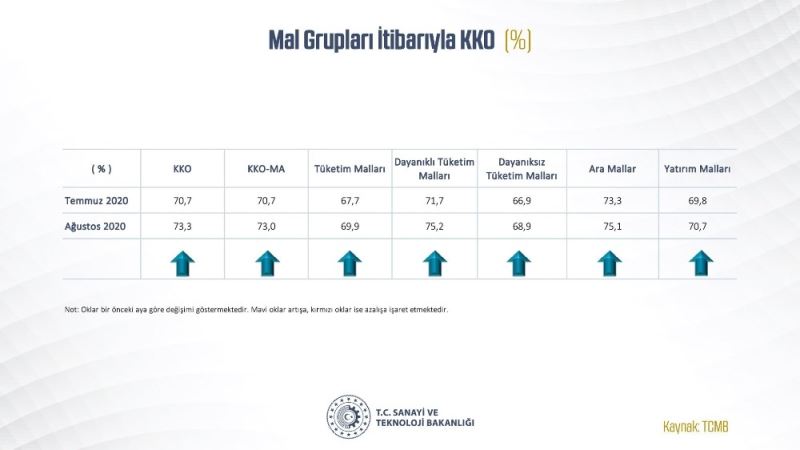 Sanayi ve Teknoloji Bakanı Mustafa Varank, Twitter hesabından yaptığı paylaşımda, “İmalat sanayimiz Ağustos’ta güçlü bir performans gösterdi. Reel sektör güveni, siparişler, yatırım harcamaları ve istihdama ilişkin olumlu beklentilerle yükseldi. Kapasite kullanım oranları da tüketim, ara ve yatırım mallarında arttı. Canlanmaya süreklilik kazandıracağız” ifadelerini kullandı.