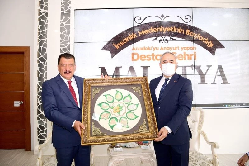 Ziyarette Malatya hakkında bilgi veren Başkan Gürkan, “Bakan Yardımcımız Malatya’yı yakinen tanımakta. Malatya’ya insanlık medeniyetinin başladığı Anadolu’yu Anayurt yapan destan şehir diyoruz. Onun için İnsanlık medeniyetinin başladığı yer diye tabir ediyoruz. Çünkü yerleşik hayatın, devlet hayatının, bürokrasi hayatının, muhasebe kayıtlarının tutulduğu ve taş devrinden demir devrine evrimin demirin silah olarak kullanılması Malatya’da zuhur etmiştir. Malatya’yı medeniyetler merkezi ve medeniyetin doğduğu yer olarak ifade ediyoruz. Anadolu’nun kapılarının 1071 yılında Malazgirt Muharebesi ile açıldığı ifade edilmekte. Ancak 650 yıllarında Malatya sancağı Anadolu’yu Anayurt yapmak için fetihlere başlamıştır. Anadolu 1071 yılından 400 yıl önce Malatya Sancağıyla Türkleşme ve İslamlaşma sürecine girmiştir. Bu anlamda Malatya hem İslam Tarihi açısından hem Türk Tarihi açısından hem de İnsanlık tarihi açısından önemli bir merkez. Bu önemli merkezde özellikle büyüklerimizin destanlar yazması, ilim irfan destanları yazan Mevlanaların, Sadrettin Konevilerin, İbn-ül Arabilerin Malatya’daki Şahabiye Kübra medresesinde müderrislik yapmış olmaları Malatya’yı tarihi açıdan daha önemli kılmaktadır. Günümüzde de Malatya hakikaten Türkiye’de Orta Anadolu’da, Güneydoğu Anadolu’da ve Doğu Anadolu’da önemli bir şehir. Temizliğiyle, tertibiyle, düzeniyle, hizmetleriyle ve insanların arasındaki barış ve sevgi atmosferinin bütünüyle temayüz etmesi nedeniyle Malatya önemli bir şehirdir. Bu şehirde şehr-ül emin olarak görev yapmak önemlidir. Bunun sorumluluğunda ve idrakindeyiz. Biz de şehrimize hizmet etme noktasında yoğun bir çaba ve gayret içerisindeyiz. Tarım ve Orman Bakanlığımız ve diğer bakanlıklarımız hakikaten Malatya’ya hizmetler noktasında ve bizim taleplerimiz noktasında şimdiye kadar yapılan talepleri de hep yerine getirmişlerdir. Malatya’ya su isale hattı ana hat diye tabir ettiğimiz yaklaşık 13 buçuk kilometrelik bir güzergahta yenileme çalışması noktasında bir talepte bulunmuştuk. İnşallah Haziran ayı içerisinde o süreç gerçekleştirilecek. DSİ Genel Müdürümüz bu konuda çok ilgi gösteriyor ve kendilerine teşekkür ediyorum. Diğer taraftan gerek çevre düzenlemeleriyle, parklarla ve fidan üretimiyle ilgili şimdiye kadar yapmış olduğumuz taleplerin hepsi en güzel şekilde yerine getirilmiştir. En önemlisi de Malatya sanayisinin yenilenmesi noktasında Altay Kışlası alanından Milli Savunma Bakanlığından bin 100 dönüm alan alınınca hemen akabinde bin 800 dönümlük mera alanın da bizlere tahsis edilmesi Malatya açısından önemli bir kazanımdır. İnşallah 2 bin 900 dönümlük alan içerisinde Malatya’nın yeni sanayi sitesinin yapılması anlamında yoğun bir temas içerisindeyiz. Sayın Bakanımıza ziyaretleri için teşekkür ediyorum” dedi.